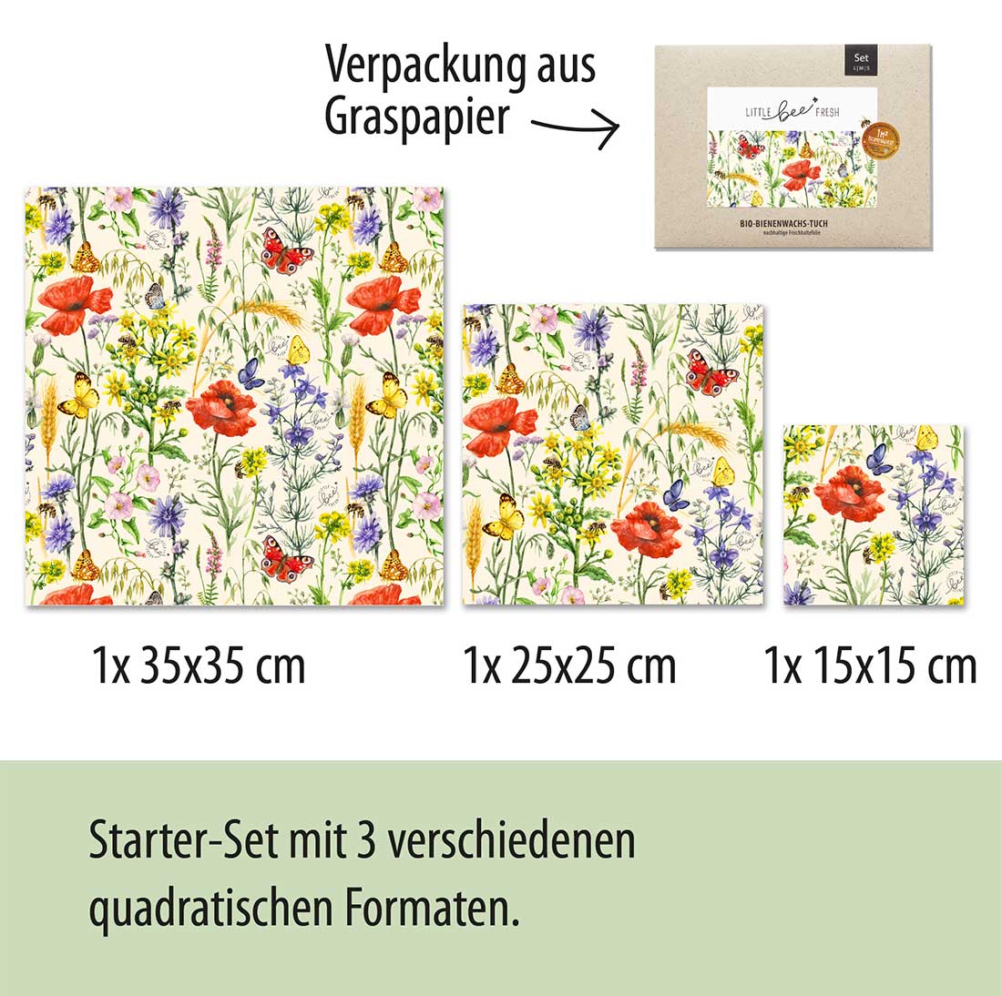 - Lieferumfang: 1x großes Tuch “L” (35 x 35 cm), 1x mittleres Tuch “M” (25 x 25 cm) und 1x kleines Tuch “S” (15 x 15 cm)