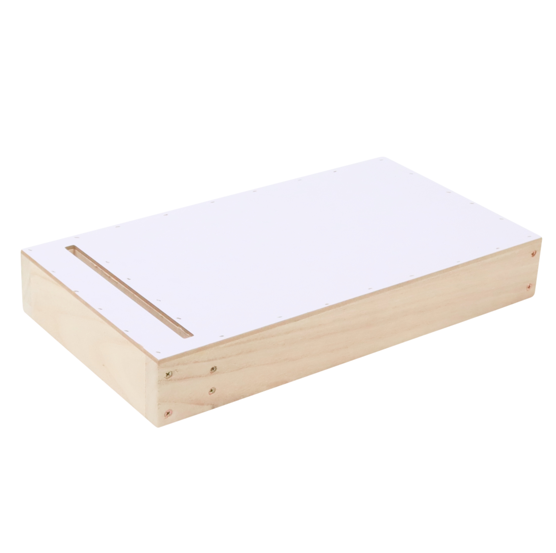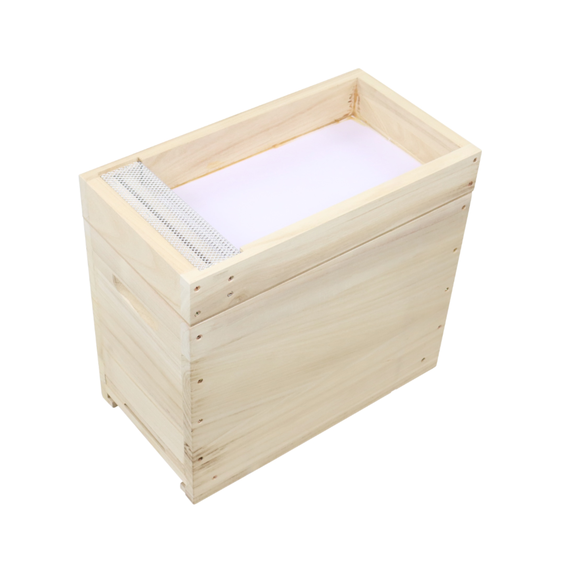 Die 5 Liter Futterzarge ermöglicht eine einfache und kontrollierte Fütterung. Der seitliche Aufstieg erleichtert den Bienen den Zugang zum Futter und reduziert das Risiko des Ertrinkens. - Passend für Dadant US Ablegerkästen