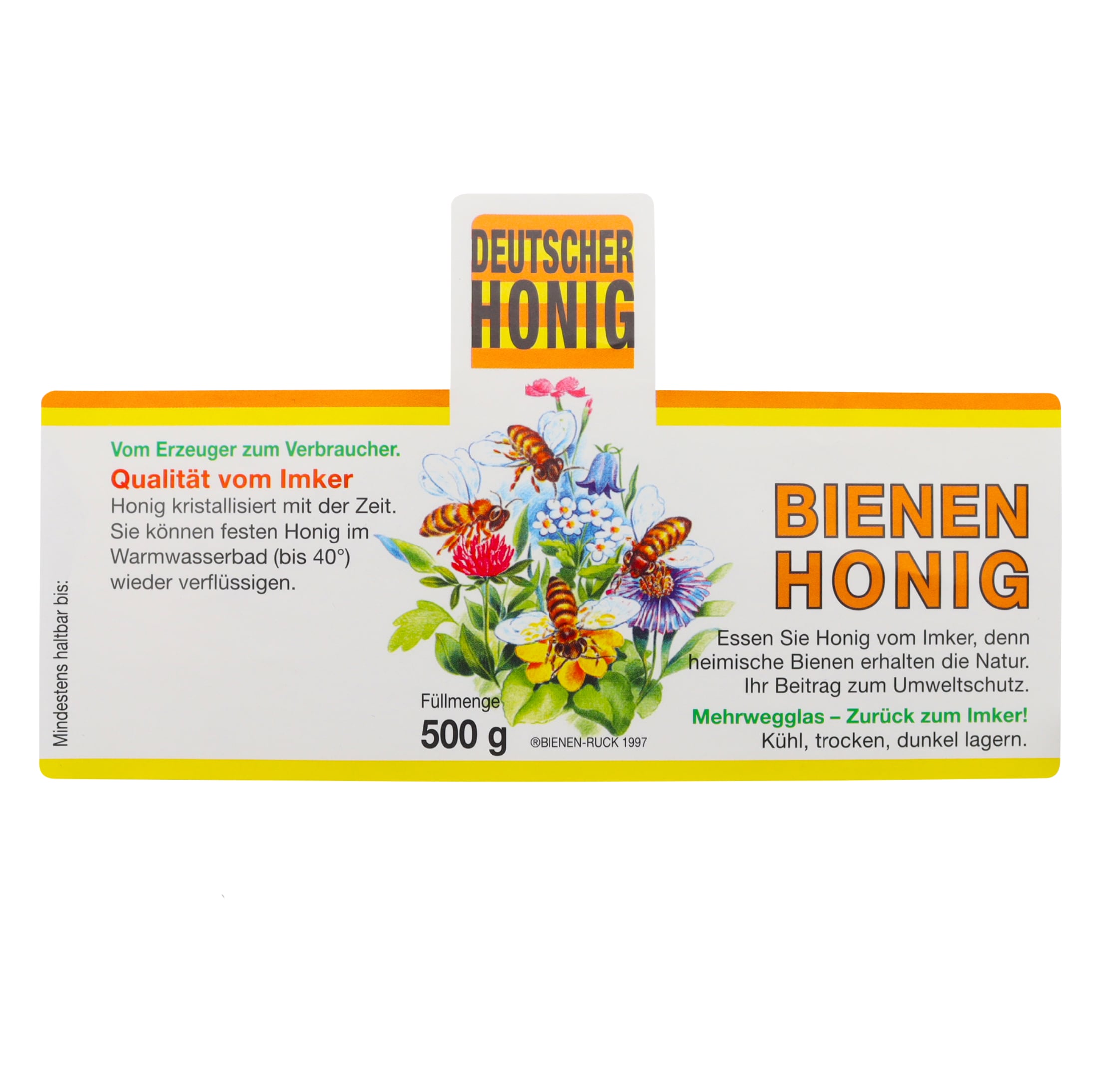 Klare Kundenkommunikation Der gut lesbare Aufdruck „Deutscher Bienenhonig“ vermittelt auf einen Blick Herkunft und Qualität, sodass Ihre Kundinnen und Kunden sofort wissen, wofür Ihr Produkt steht.
