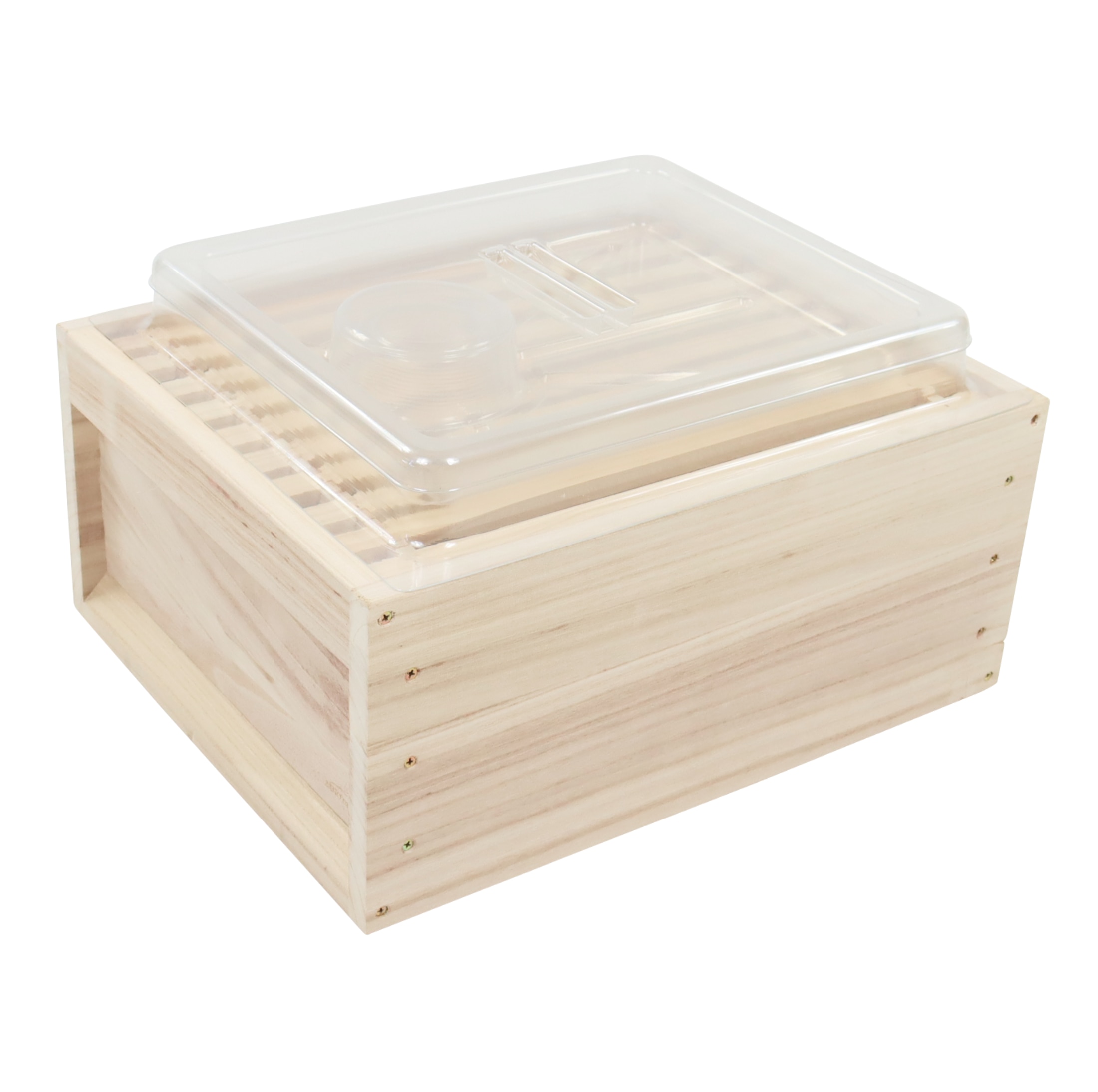 Der Futtertrog ermöglicht eine einfache und sichere Gabe von flüssigem Bienenfutter. Der abnehmbare Innendeckel verhindert zuverlässig das Ertrinken der Bienen und sorgt für eine sichere Futteraufnahme. - Transparente Kontrolle des Futterstands